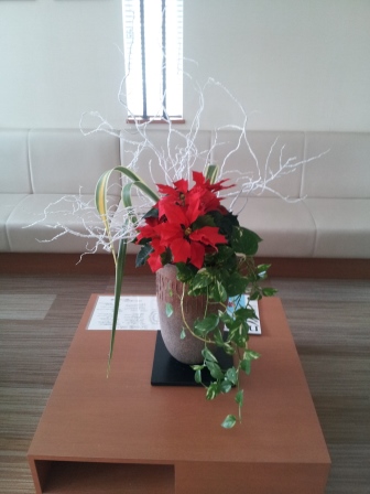 受付のお花がクリスマスバージョンになりました。