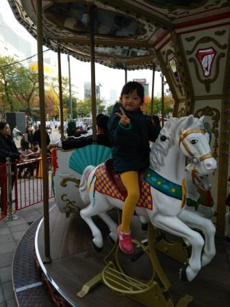 警固公園にメリーゴーランドがありました。娘ちゃん大はしゃぎでした(^O^)